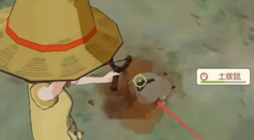 2、靠近土拨鼠,吹喇叭吸引土拨鼠注意力,使用【弹弓】对准土拨鼠进行捕捉。
