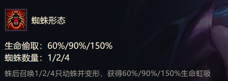 蛛后释放技能召唤蜘蛛,并且获得普通攻击可以汲取生命值。