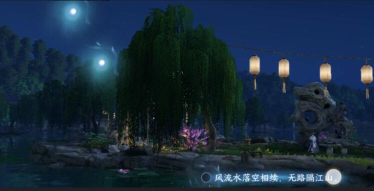 4、玩家随镜头视线来到苏堤旁水面上以流水为意象作词第三句风流水落空相续,无路隔江山。