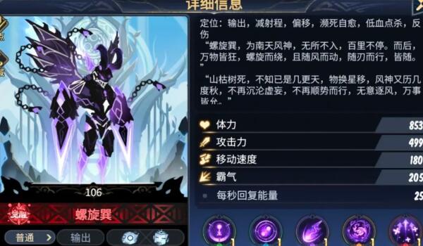 螺旋巽主要靠自身坦度和反伤来输出,需要多加体力。