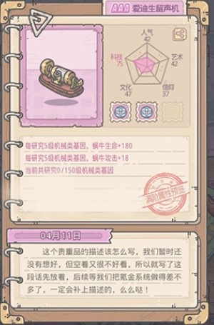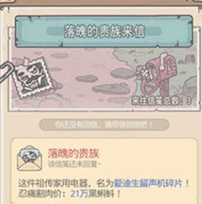 最强蜗牛中,落魄的贵族每次来信都会给我们推荐各种商品,这次他带来的是爱迪生留声机。
