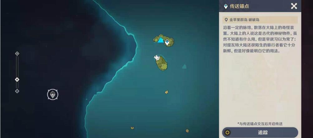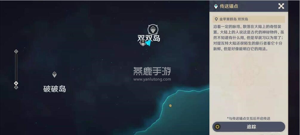 1、首先打开地图,点击双双岛的传送锚点,并追踪;
