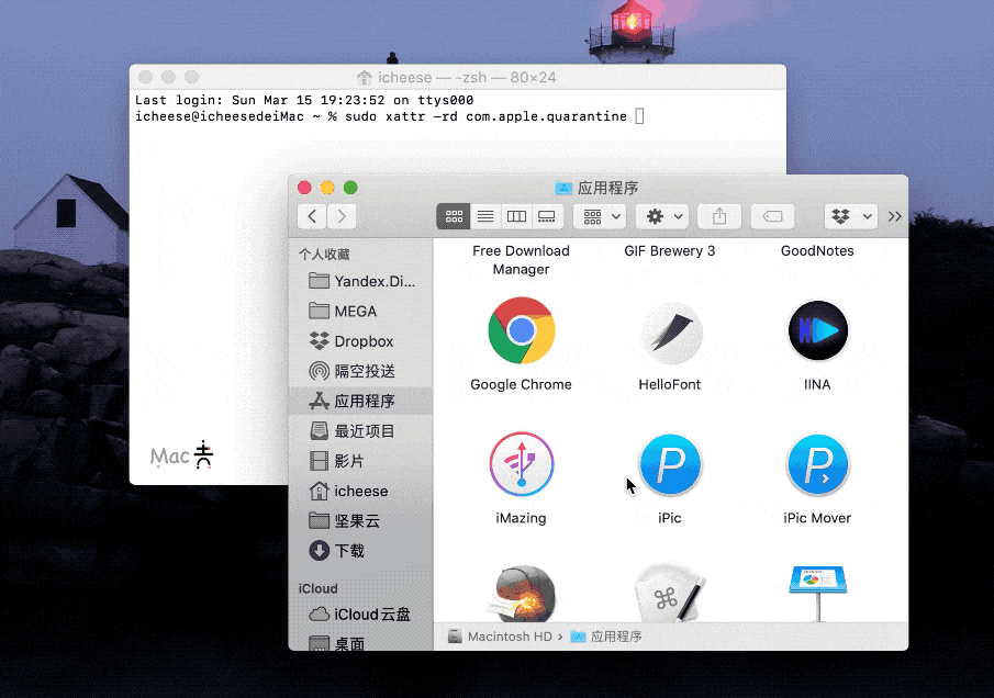 sudo xattr -rd com.apple.quarantine 空格 软件的路径