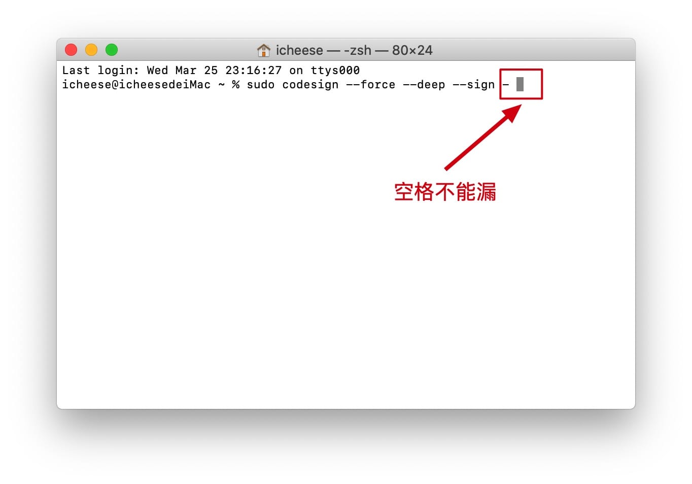 打开终端工具输入并执行如下命令:sudo codesign --force --deep --sign - (应用路径)