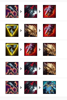 渴血战斧:对你周围的敌方单位造成伤害,伤害值为110%攻击力。回复生命值,回复量为20%攻击力,此外,每命中一名敌方英雄,回复量+你已失去生命值的12% (15秒冷却时间,受技能急速影响).