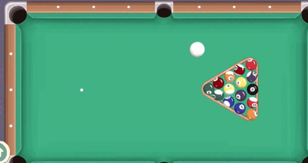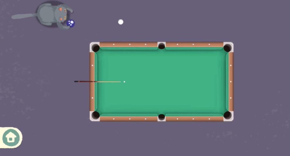 4、最后我们把猫在玩的台球放在台面上,再用白球将它打进去即可顺利通关。