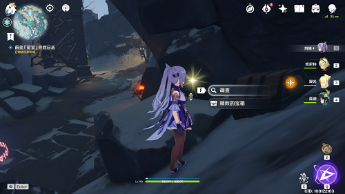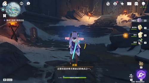 6、然后玩家返回星荧洞窟,在洞窟中使用赤石击破坚冰,进入以后就可以找到第二本考据书籍。(亮光处就是书籍)