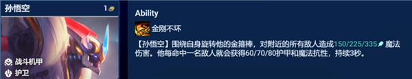 而在3/5机甲羁绊的加持下可大幅度增加其血量,坦度非常优质,另一方面3/5机甲还能给悟空带来60%或110%的攻击力与法强加成,可大幅度提升其输出强度。