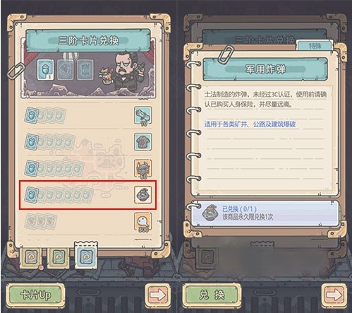 2、在卡面中选择三阶卡片,然后选择用7个三阶卡片兑换一个军用炸弹。