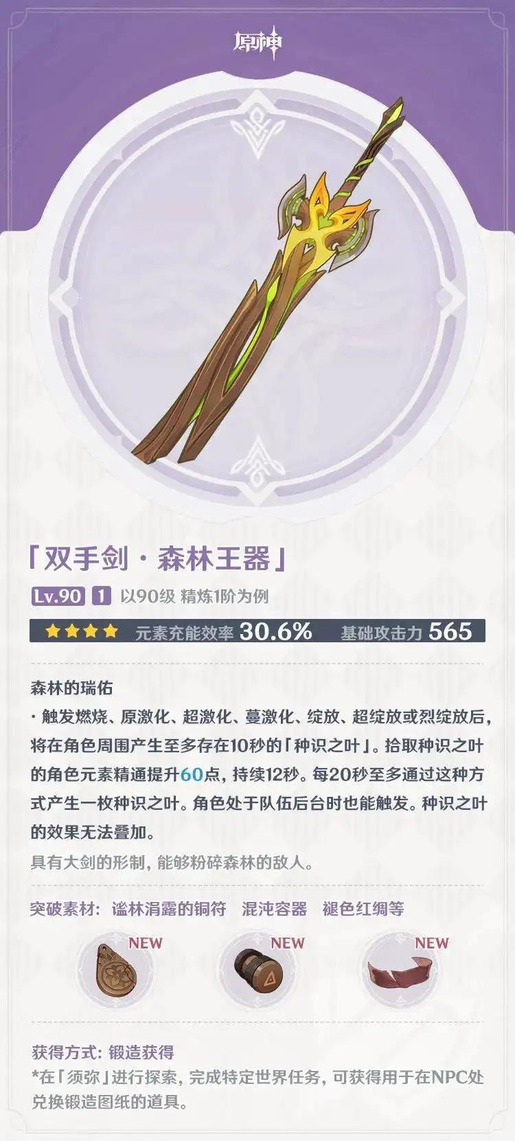 以上便是小编为大家带来的原神双手剑森林王器满级属性介绍,相信在看完以上内容后你已经了解到了武器森林王器的属性,更多武器属性敬请关注。