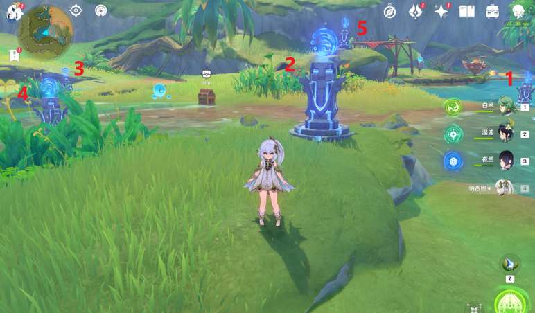 2、洞窟北边按照下图顺序激活5个方碑: