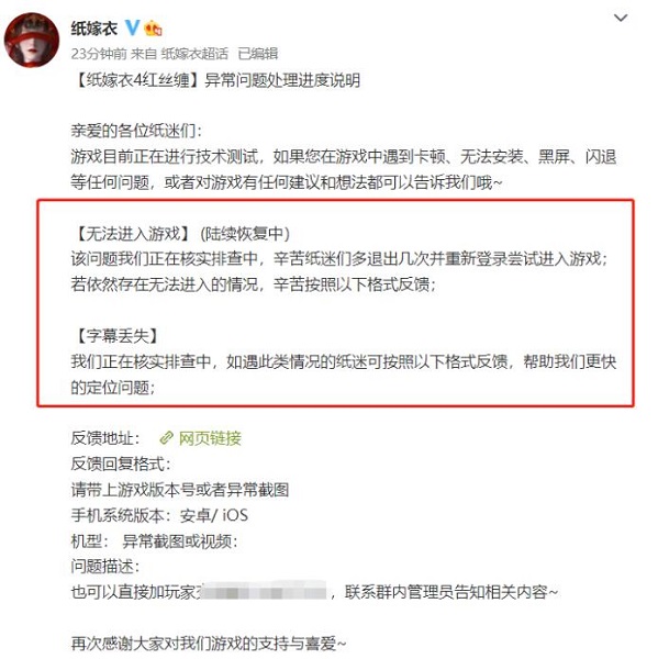 1、纸嫁衣4游戏出现字幕丢失的情况是系统除了问题,也就是系统bug。