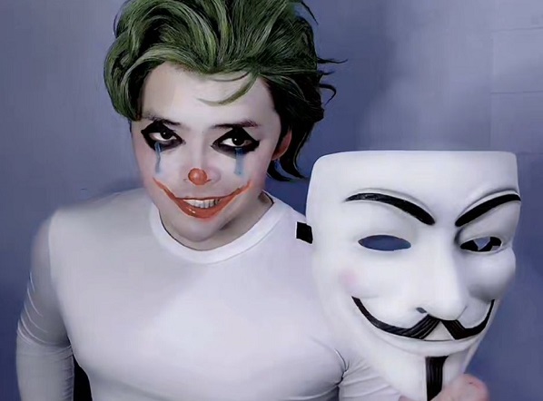 ,在视频中他模仿DC漫画旗下的超级反派小丑角色