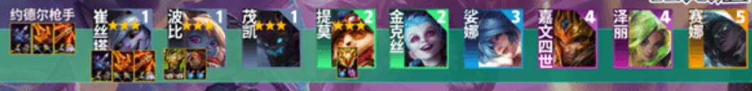 2、阵容羁绊:4枪手3约德尔人2术士;