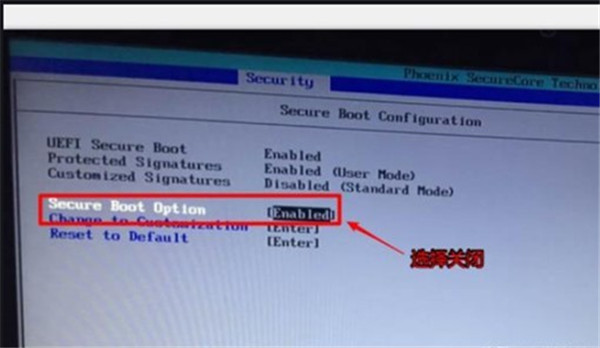 4、接着将secure boot status由"disabled"改为"enabled"。