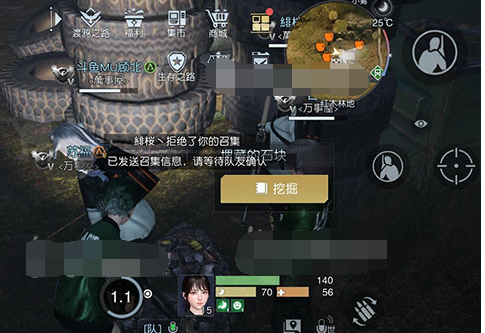 2、到达后可以看到这边有轮胎,在轮胎附近可以找到石头,点击挖掘就可以获得宝藏。