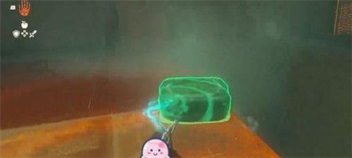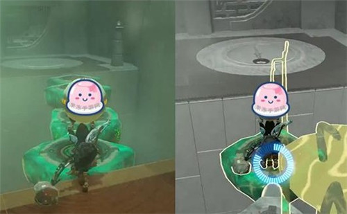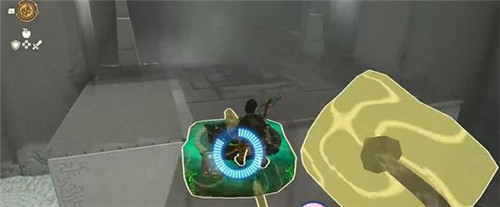 1、进入神庙后,我们对着这个滞空的物体进行操作,把它先向上移动再向下移动。