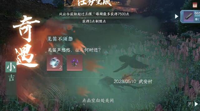 5、剧情到这里就结束了,听完羌笛的故事即可完成任务。