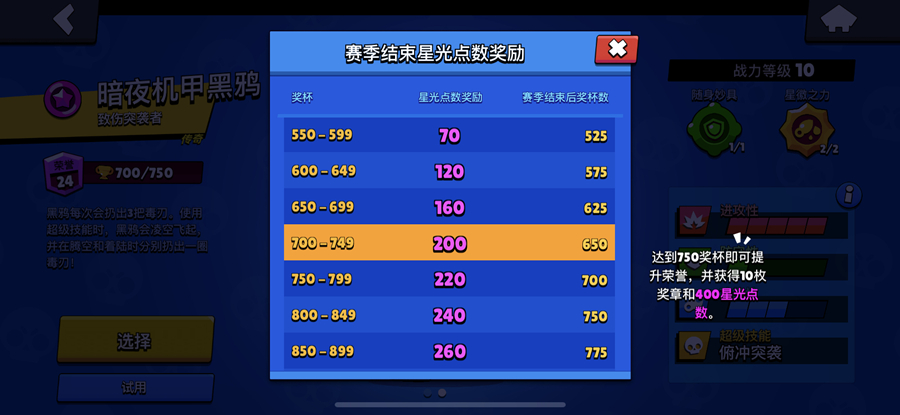 赛季结束星光点数奖励表:
