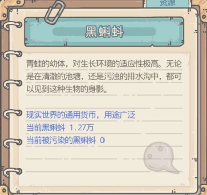 3、点击最上方的蝌蚪图标,就能看到收集的黑蝌蚪的信息。