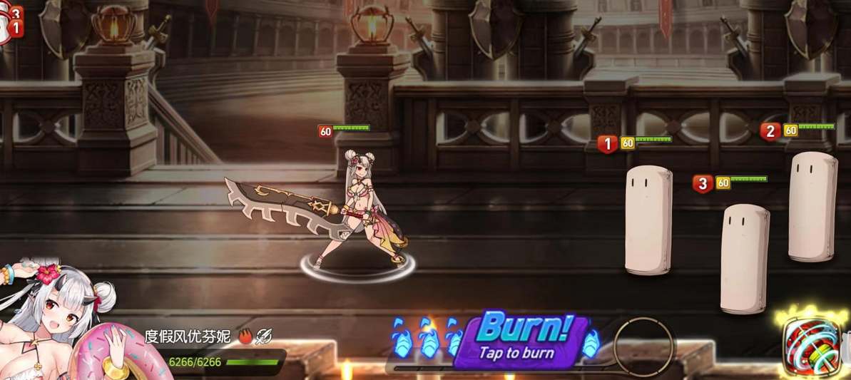 度假风优芬妮的攻击会附带灼烧效果消耗敌人血量,同时为友方提高攻击力属性,是一个输出和功能性兼备的角色。