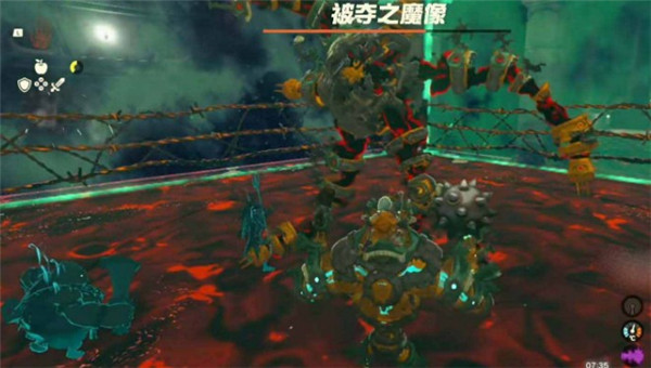 4、战斗可以使用弓箭冰冻敌人或者配合爆炸果将其炸飞,伤害全是把boss击退到墙上的机制伤害。还要注意控制电量,电耗完了魔像移动速度会变慢不便于躲避技能。