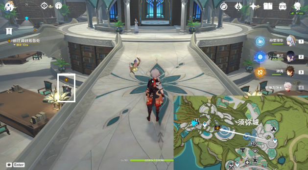 1、前往教令院内智慧宫,往地图的南方走,前往图中调研筹备处。