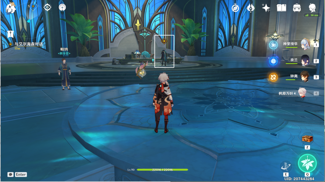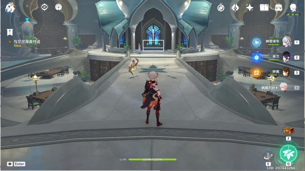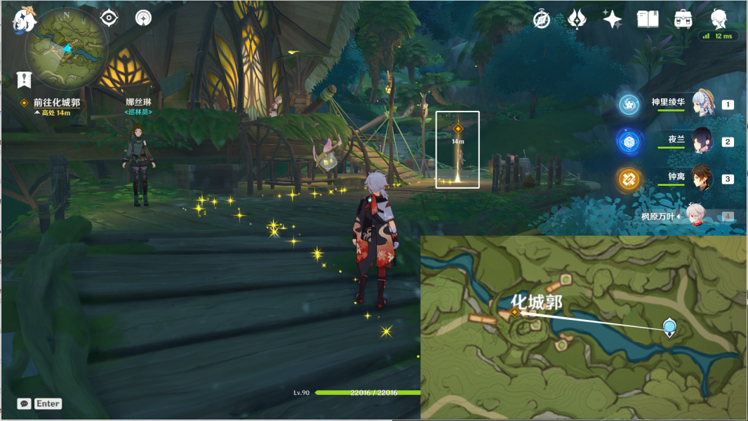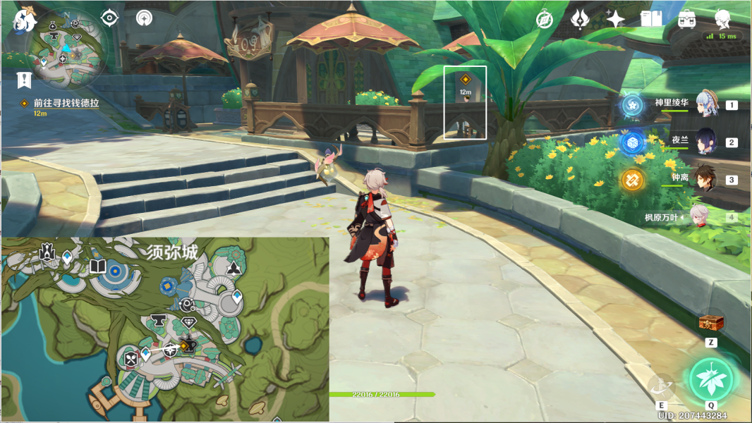 3、传送须弥城锚点,往下看,前往图中亭子寻找杰娜姬。