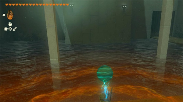在刚刚穿过前方的门后,从左侧的水池底可以找到一个宝箱。