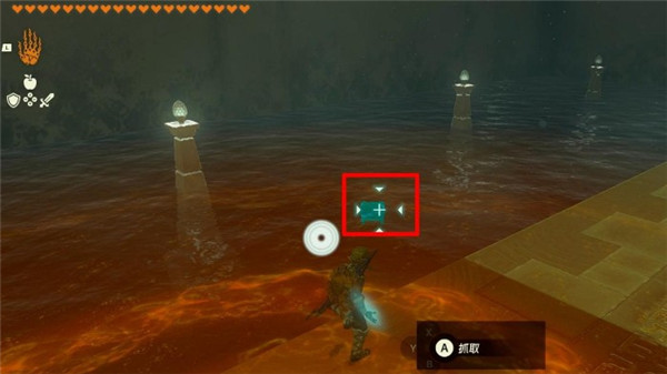 用究极手将水中的黄球压入水下,再松开后即可使黄球命中上方的靶子。