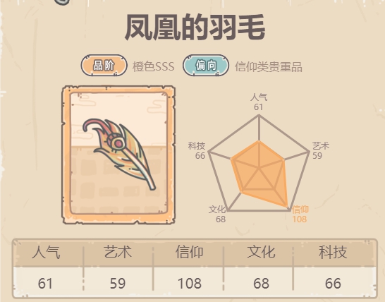 最强蜗牛中,凤凰的羽毛是一个橙色SSS级品质信仰类的贵重品,这个贵重品可以大幅度的提升我们蜗牛的攻击和追击属性,还能提升蜗牛巨龙形态下的探索移动速度。这个贵重品的属性是什么样的呢?