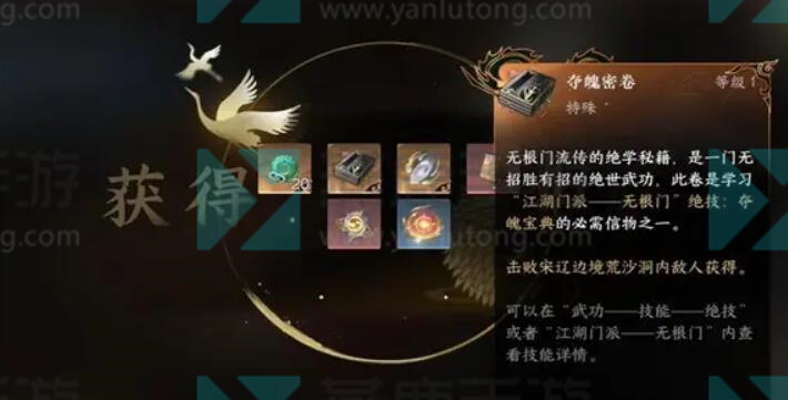 4、玩家将其打败之后可以获得一个宝箱,在宝箱里面就有夺魄密卷以及其他的奖励。