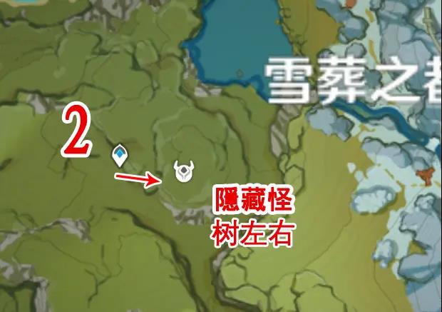 第二只:在雪山左边传送点,是隐藏怪,在树的左右位置;