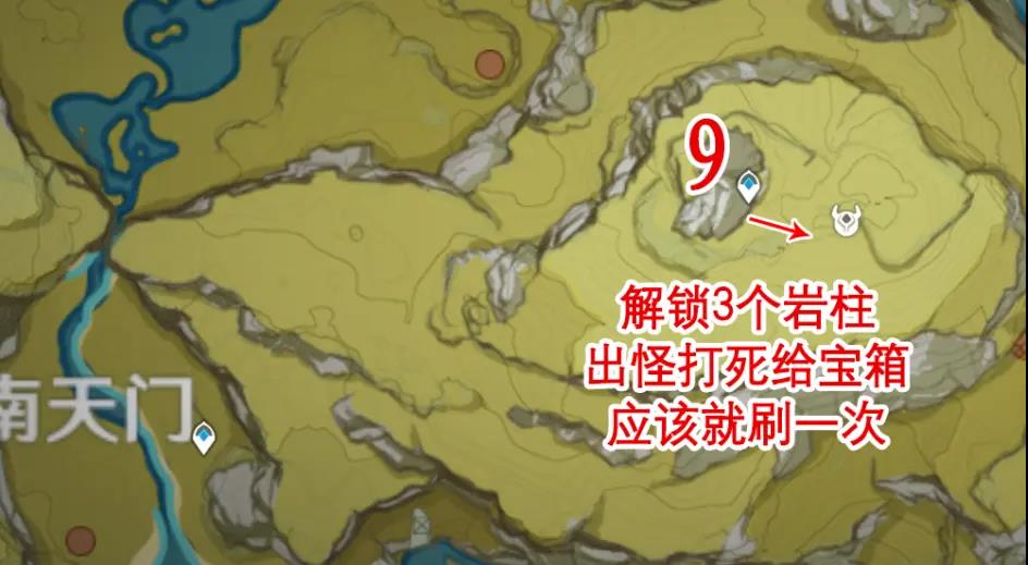 第九只:解锁三个岩柱,就能刷到,应该只刷新一次。