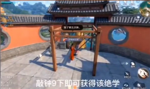 2、见下图,我们敲钟9下即可获得这个江湖技能