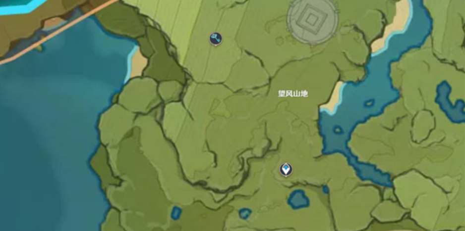 1、第一个地灵龛位置在望风山地传送点的西北方,如下图所示;