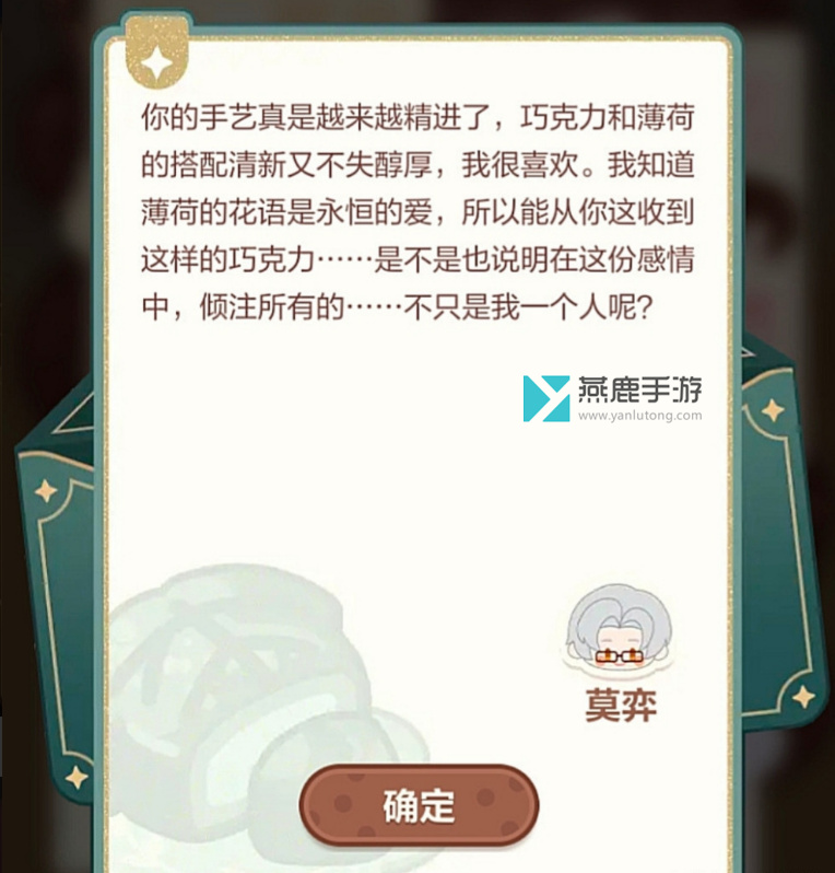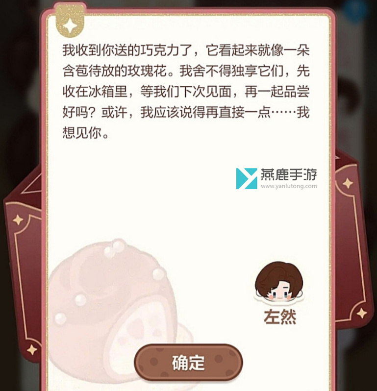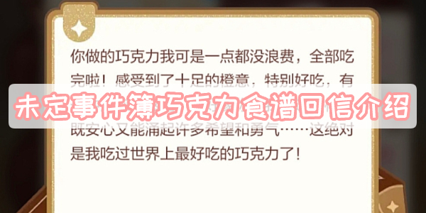 以上就是这篇文章有关未定事件簿巧克力食谱回信介绍的所有内容了。更多游戏相关资讯内容,敬请关注。