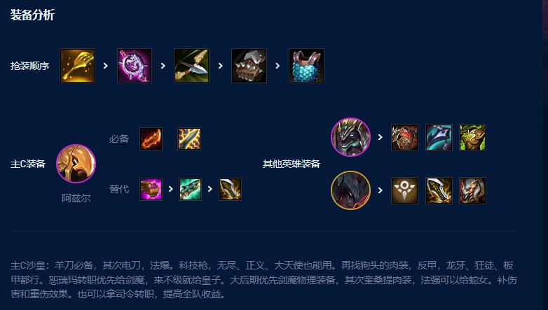 2、主C沙皇羊刀、法爆必备,第三件装备可以正义或科技刀。