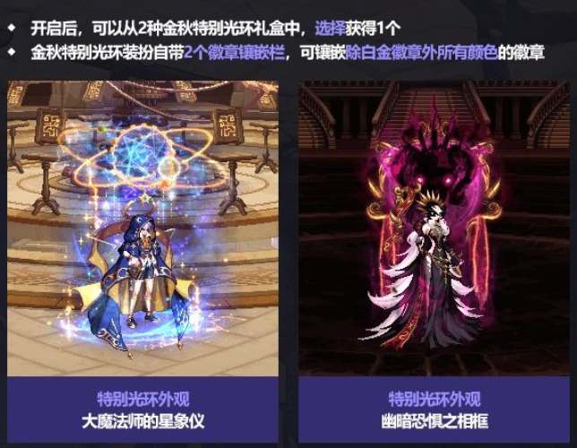 3、礼包内容:1套普通装扮,1套克隆普通装扮,1个国庆光环,1个金秋称号(打开后可交易回点血),1个普通武器装扮,1个特别宝珠礼盒,1个华丽的徽章套装礼盒,1个增幅支援套装礼盒(内含黄金书账绑2本或者可交易1本)