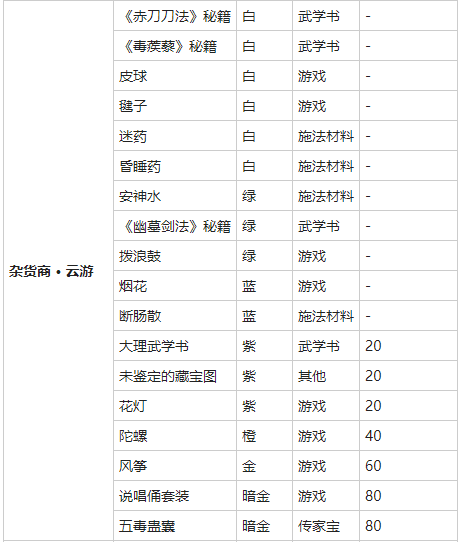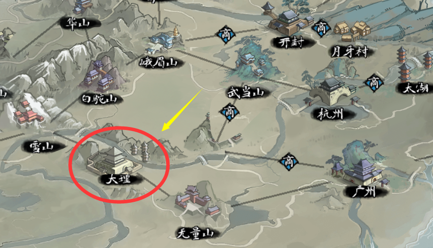 打开大地图进入到大理,在大理掌柜麦西川处购买,大理——城郊——云水客栈——杂货商 · 云游。