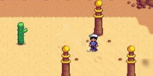 3、然后我们到沙漠中,站在如图所示的三根柱子中间,举起五彩碎片。