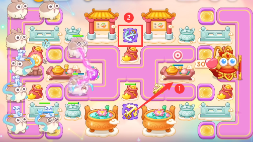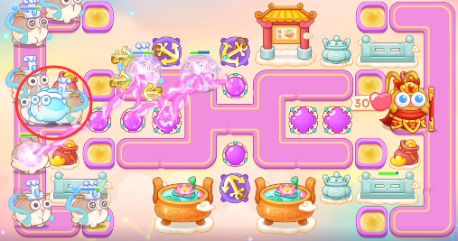 5、这一关会有冰冻兔要小心一点,注意给炮塔解冻。