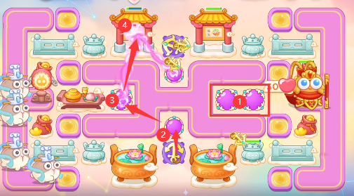 3、障碍物清理顺序如图所示,清理完障碍物之后建立魔法球。