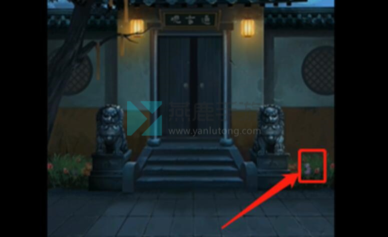 2、之后出来到门外,在右边石狮子这里拿到一朵花。