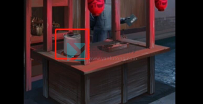 8、在新的场景点击左边的摊位如图进行解谜即可获得三罐茶叶。