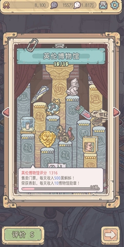 3、博物馆可以在前期卡分从而控制加成,玩家们尽量要将溢出的评分控制在2分以内。