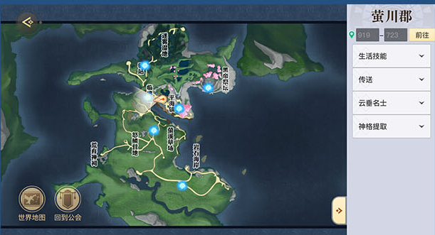 1、打开地图,传送到萤川郡平海镇附近(919,723);