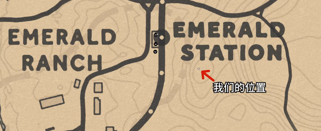 1、我们在白天来到翡翠牧场车站对面的小山上,具体位置如下图所示。