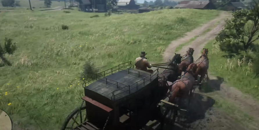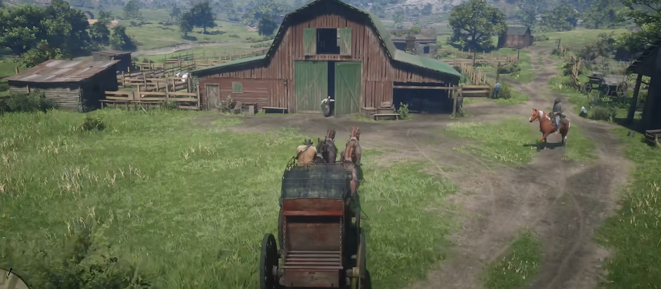 3、开枪后,马夫就会被吓跑,之后我们就可以骑上驿站马车并将其开到翡翠牧场的马匹黑市中卖掉。