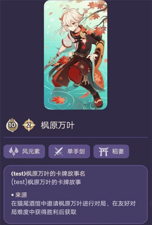 在猫尾酒馆中邀请枫原万叶进行对局,在友好对局难度中获得胜利后获取